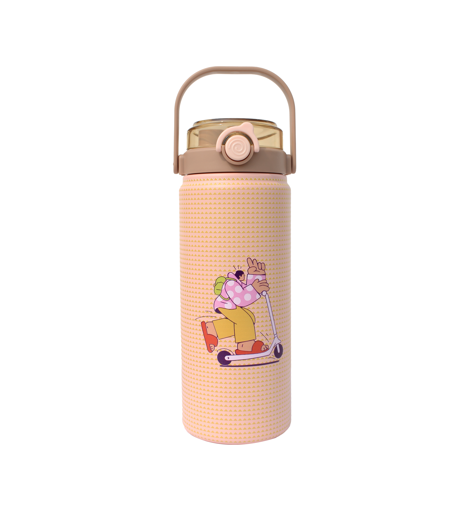 Secure flip-and-sip lid with dual access – sipper and chug port.